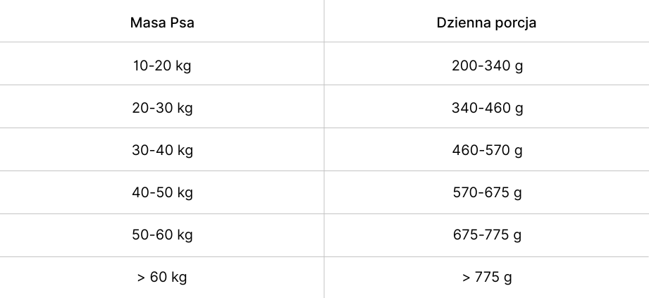 Karmienie: Aby zapewnić swojemu psu najlepsze odżywienie, zalecamy dostosowanie porcji karmy do jego aktywności, rasy i indywidualnych potrzeb. Szczegółowe informacje dotyczące karmienia znajdziesz na opakowaniu produktu oraz w zakładce propozycja karmienia.